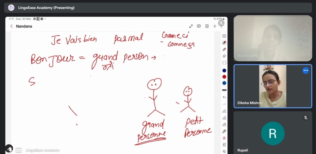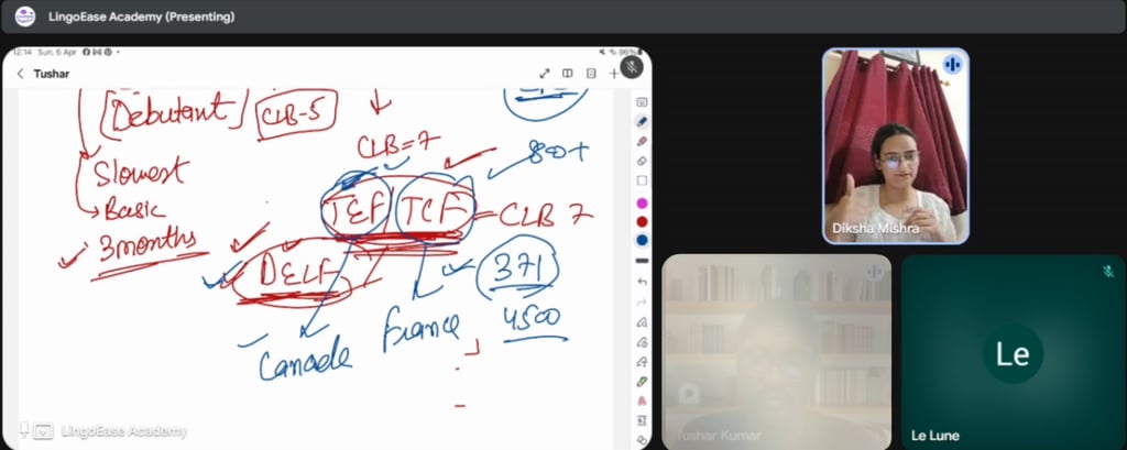 My French learning buddy sugested me LingoEase by Diksha maa'm and I enrolled in online French A1 A2 sessions. I would recommend this language school, to other friends too to master this new language efficiently, as it's the best online class out of so many demos that I took. Thank you mam the class is very very interesting effortlessly, the teaching method used helps to learn language efficiently. Best wishes to all for TEF exam.